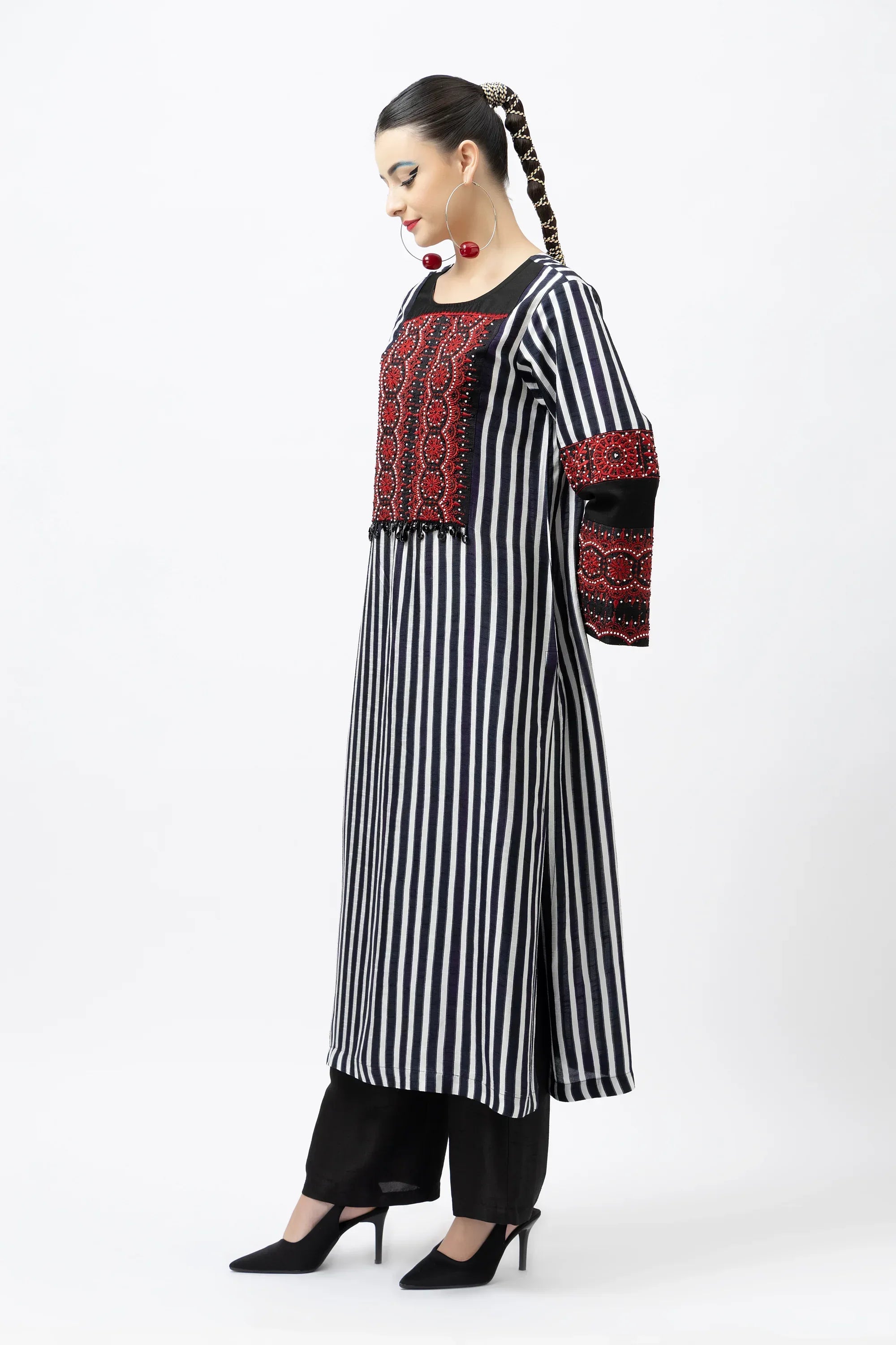 Tribal embroidery and nomadic tassels meet bold monochrome stripes — a collection that owns the room.