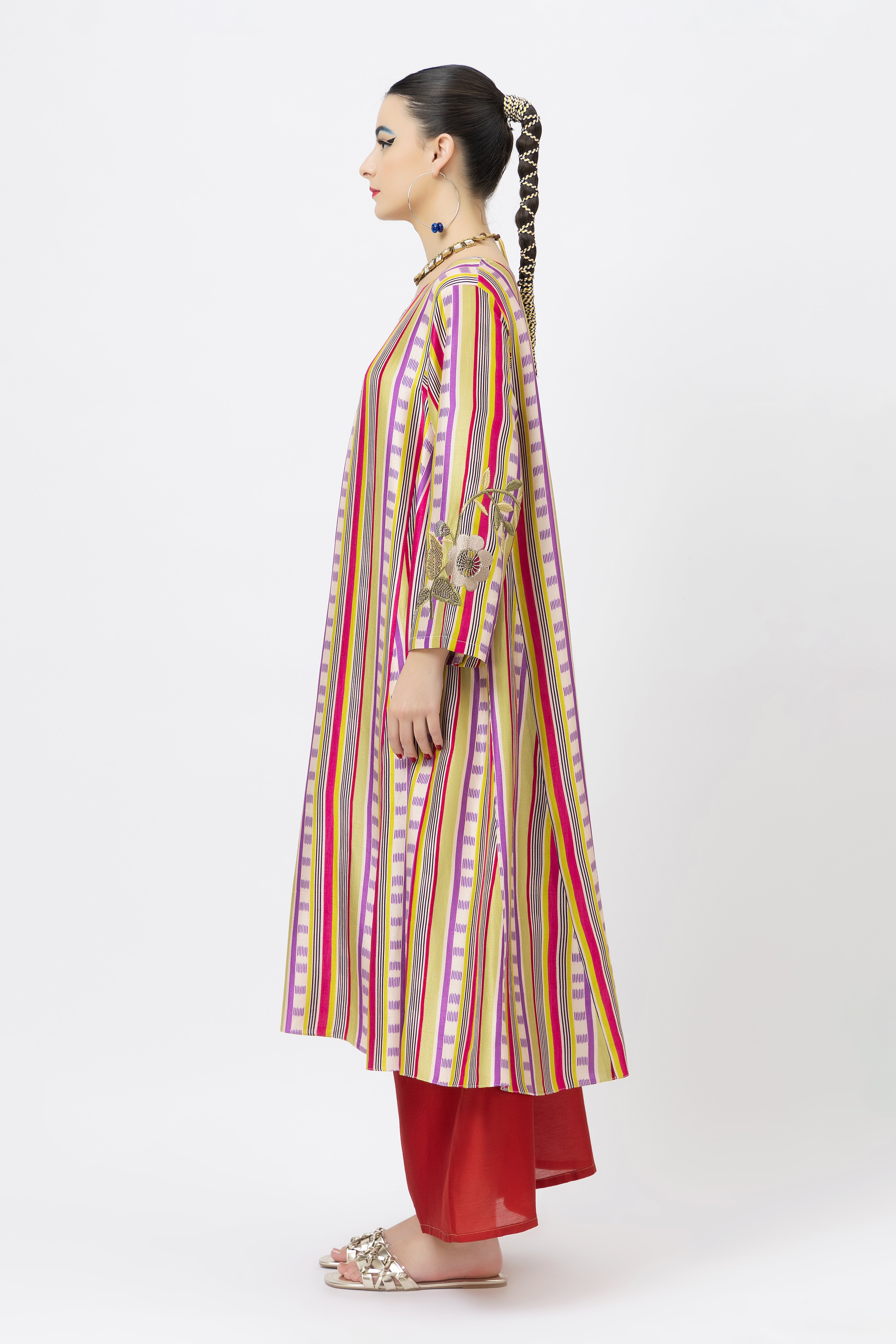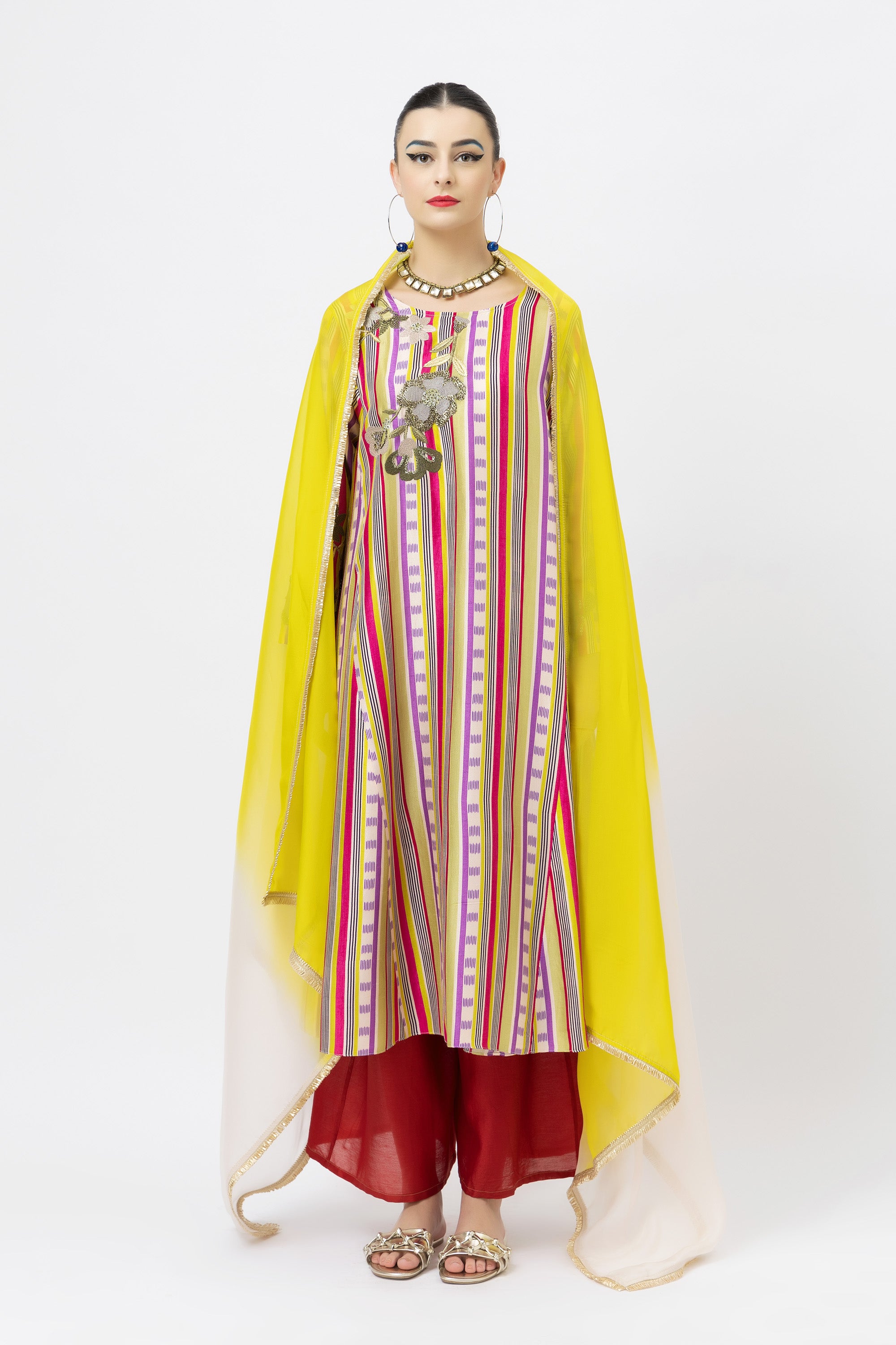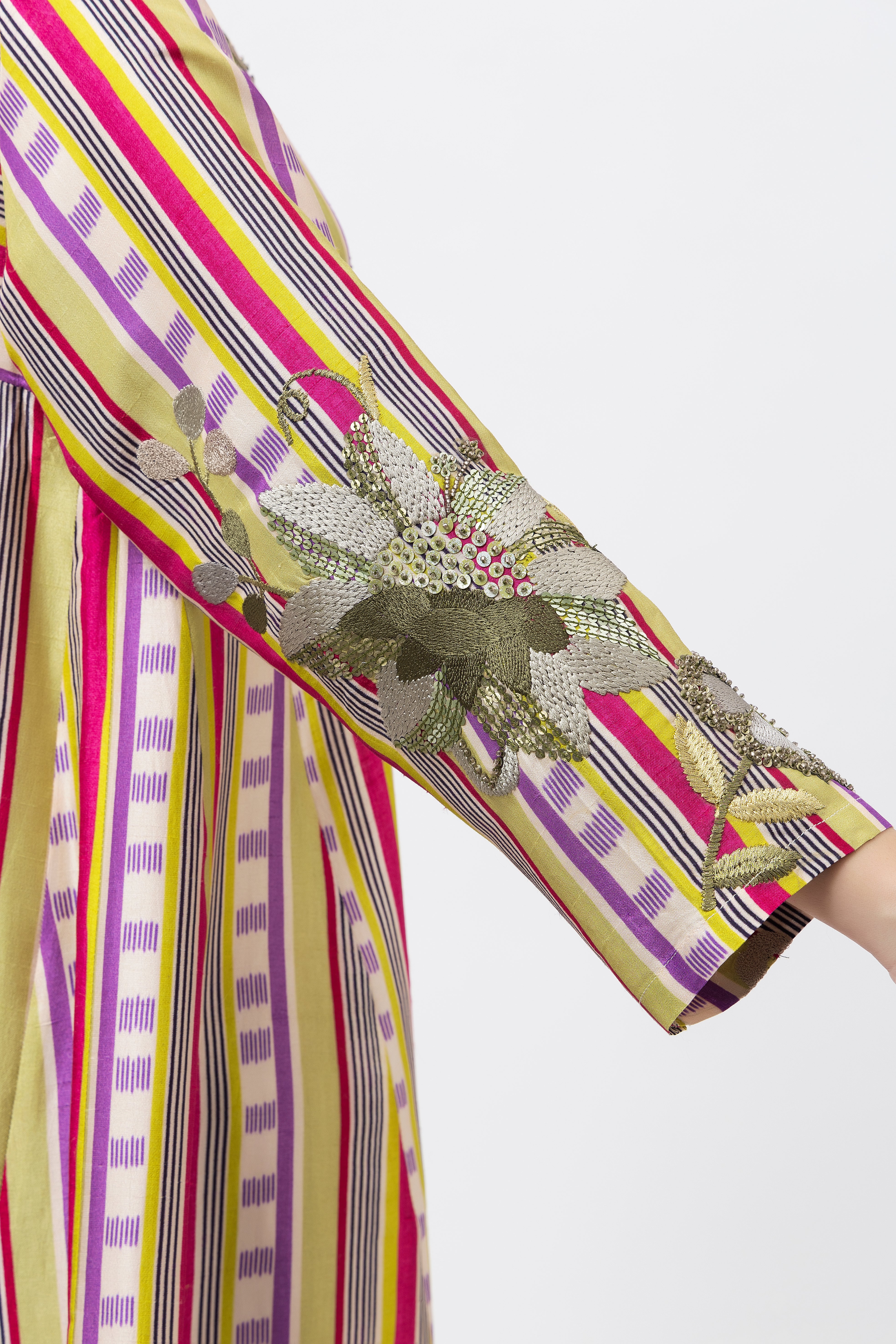 Tweaked in colour, drenched in beauty, and made to steal hearts. Featuring elegant hand embroidery, this piece is the perfect modern–traditional blend for the upcoming festivities.