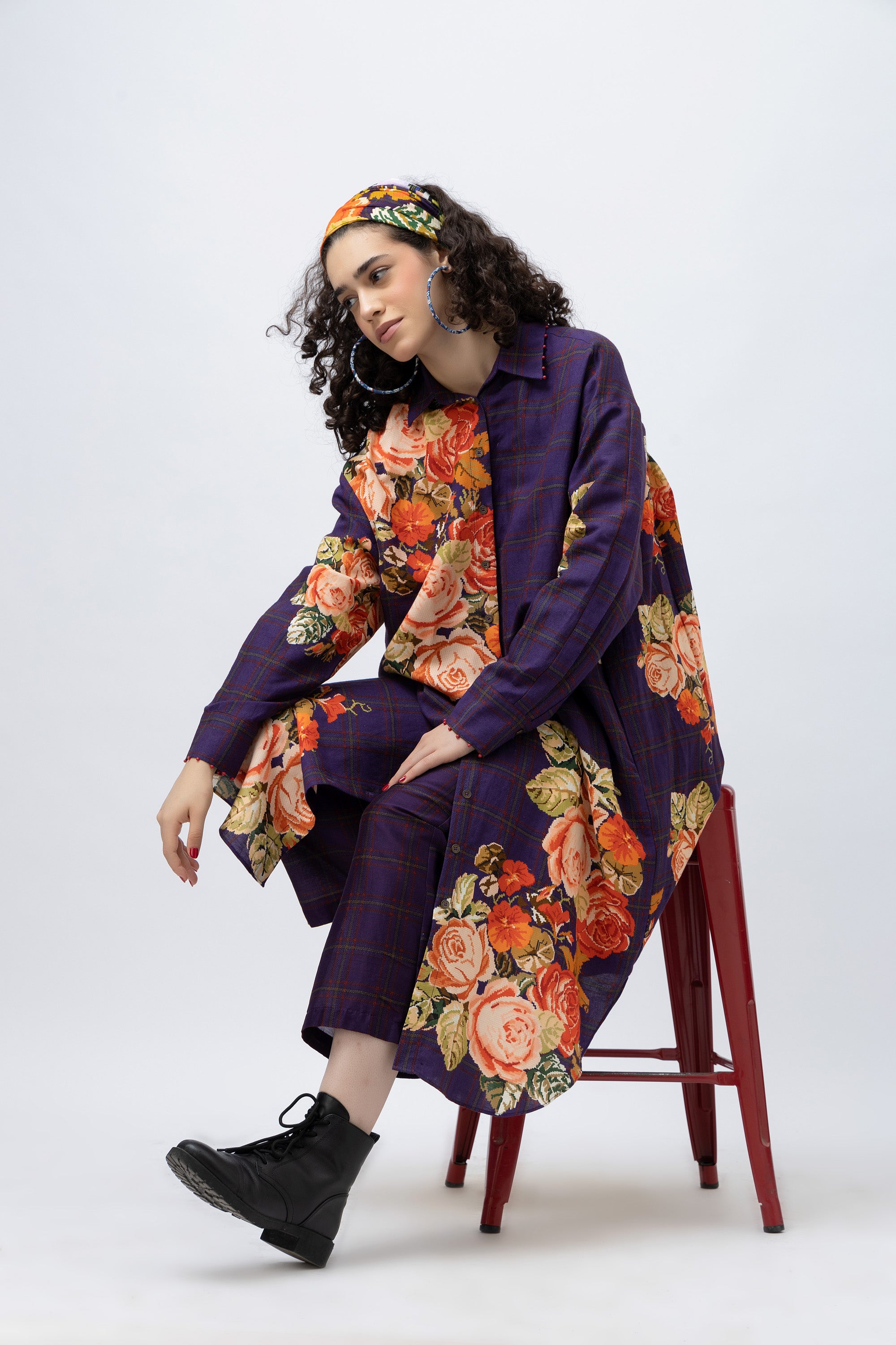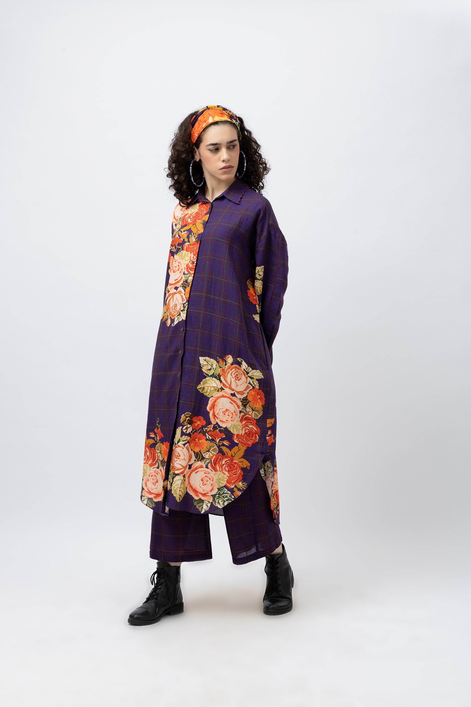 Front-open shirt collar on top, comfy elastic waist on bottom — made for days you want style without the squeeze.