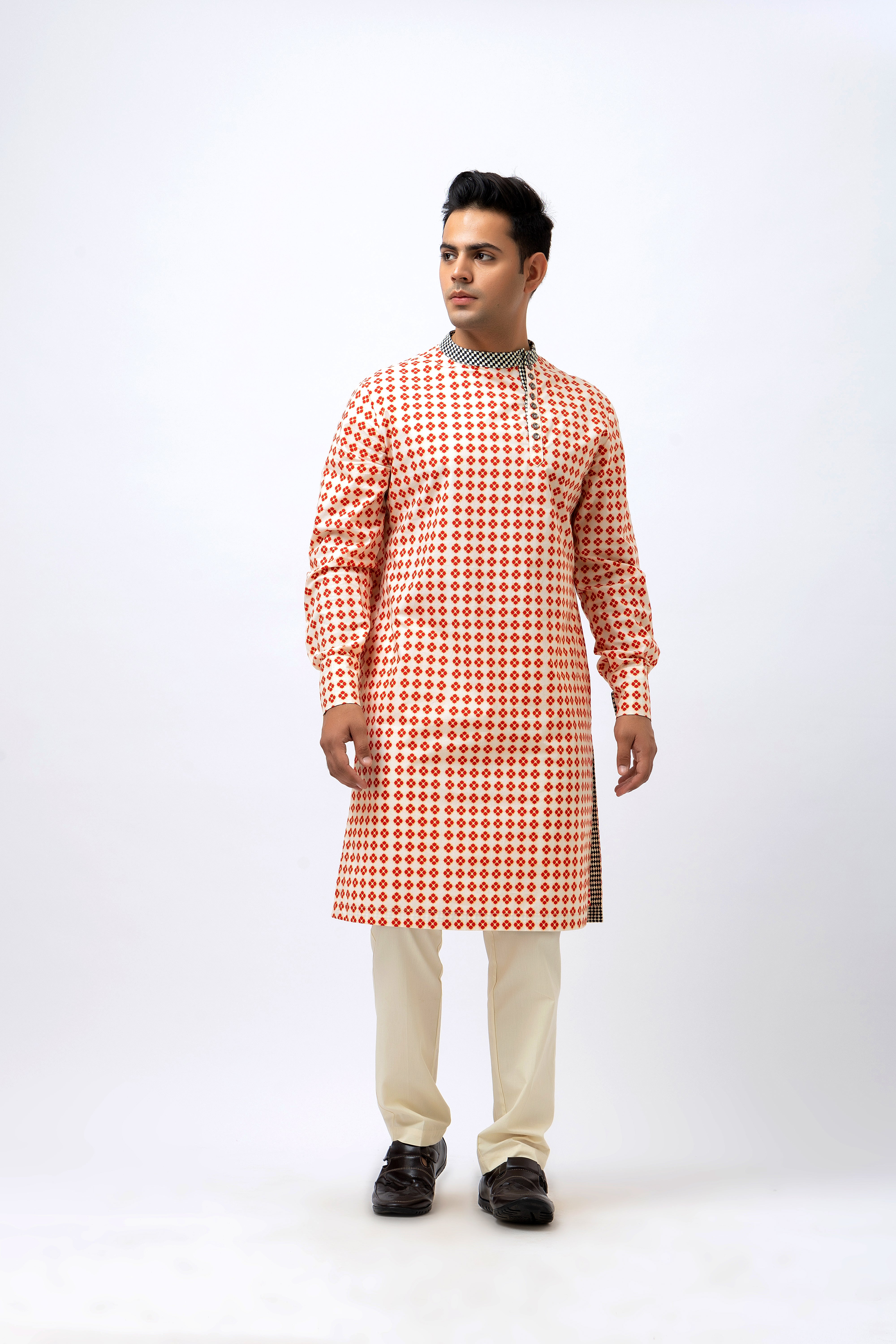 Jungle Marigold brings printed kurtas with a refined boldness — where artful motifs meet timeless tailoring. Designed for the man who commands attention with quiet confidence, each piece is a celebration of heritage, style, and modern indulgence. This season, make every entrance unforgettable.