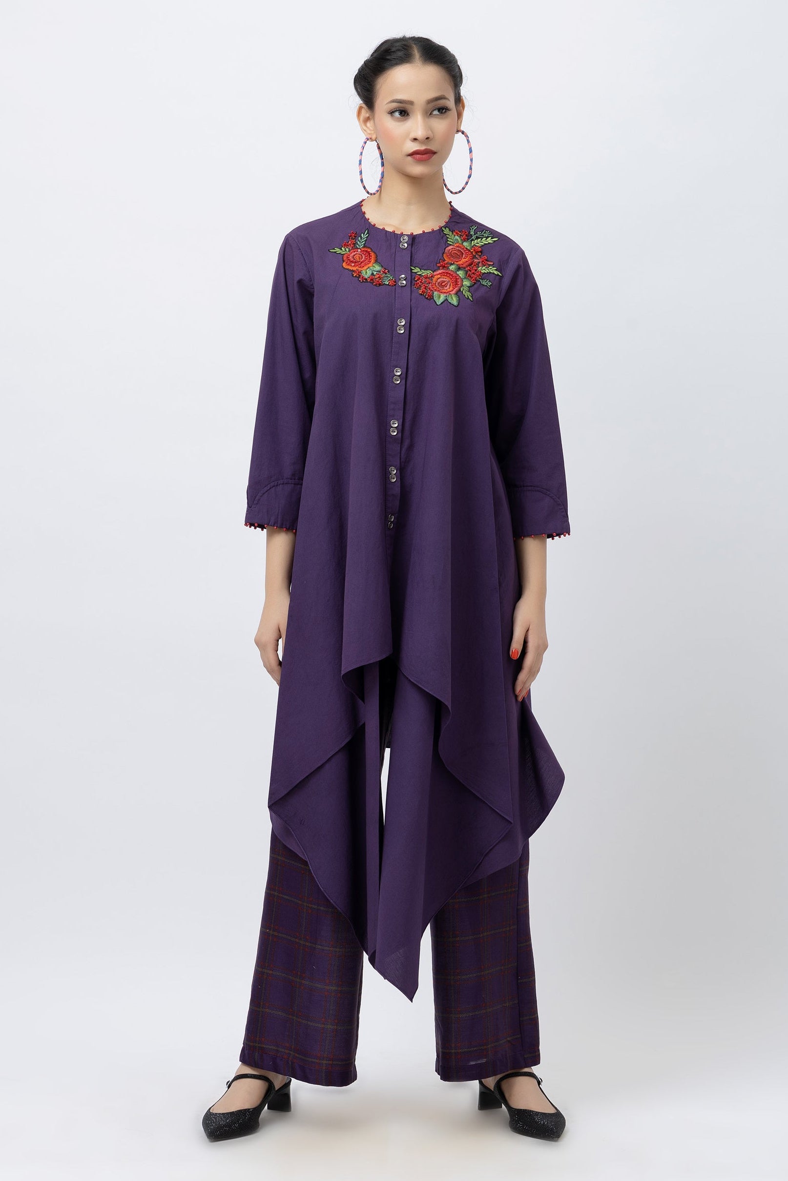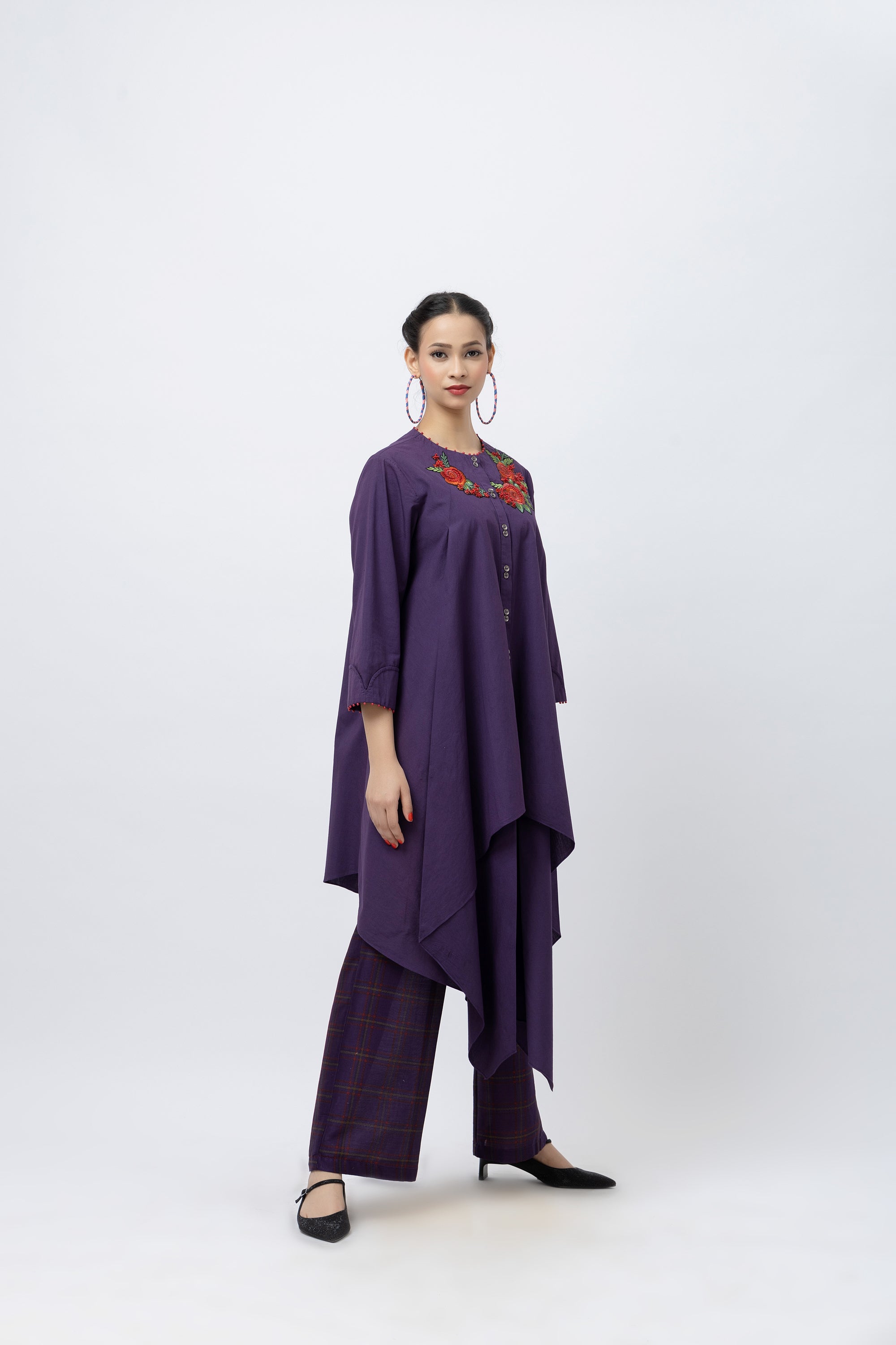 A modern asymmetric fit-and-flare dress made in heavy cotton for the perfect fall. Thoughtful hand embroidery accents the neckline, sleeves, and back — a blend of structure and softness in one elegant piece.